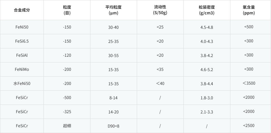 Compo公司長期致力于快速凝固霧化技術的研究,在此基礎上成功開發出合金成分均勻,雜質少,球形度好,高松裝密度和良好流動性的金屬軟磁合金粉。采用該粉末制備的軟磁磁粉芯具有損耗低,磁導率高,優異的直流偏置特性和良好的溫度穩定性等優點。
