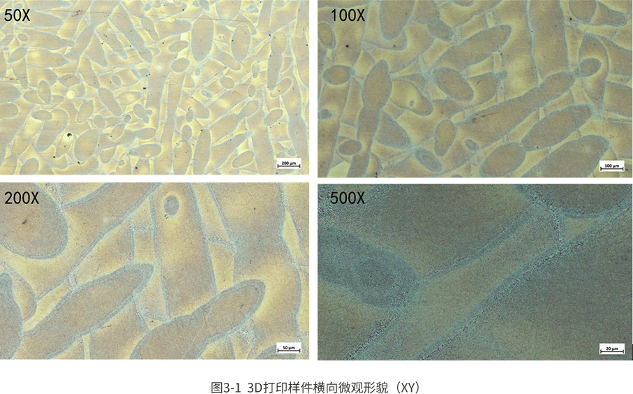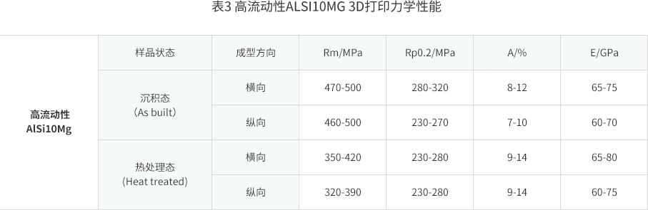 3D打印高流動性AlSi10Mg試棒,進行去應力退火后進行拉伸測試。具體檢測結果見表3。