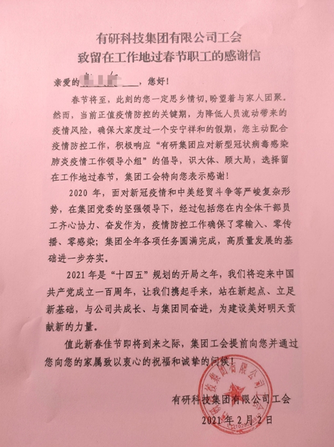 2021年春節假期,為配合國家疫情防控工作,有研集團廣大職工積極響應,選擇留在工作地過春節。為了讓就地過年的職工度過一個有溫度有意義的新春佳節,集團黨委統一部署、精心組織,推出系列暖心舉措。