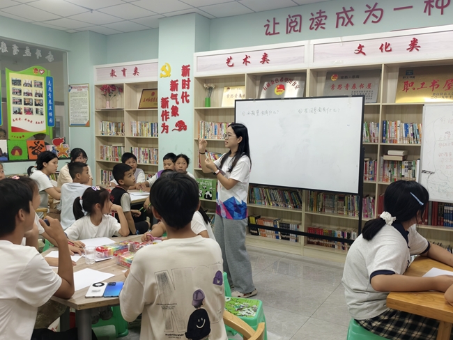 支教活動(dòng)課程設(shè)計(jì)秉持著“勞逸結(jié)合,寓教于樂(lè)”的理念,開設(shè)了語(yǔ)文、數(shù)學(xué)、英語(yǔ)、科學(xué)等學(xué)科類課程,以及手工、美術(shù)、音樂(lè)、文體等素拓類課程。采取積分獎(jiǎng)勵(lì)制度激發(fā)學(xué)生參與課堂的積極性,并根據(jù)學(xué)生學(xué)段分布情況,適當(dāng)開展分班教學(xué)。