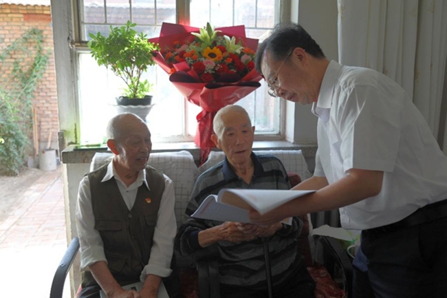 趙曉晨、黃小衛一行來到原905廠廠長吳瑞榮家中,與吳瑞榮及原廠紀委書記唐華澤親切交談。趙曉晨向兩位老同志贈送了《有研回憶錄》及早年工作檔案復印件,并介紹了中國有研近些年的發展情況,同時請他們轉達對其他援建老同志的誠摯問候。