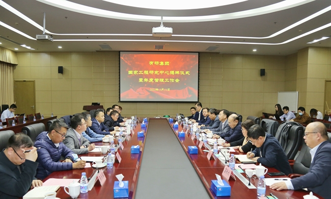 3月11日,有研集團舉行國家工程研究中心揭牌儀式暨年度管理工作會議。有研集團黨委書記、董事長趙曉晨,黨委副書記、總經理熊柏青,名譽院長、中國工程院院士屠海令,首席科學家、中國工程院院士黃小衛出席揭牌儀式并參加年度管理工作會,副總經理周旗鋼主持會議。