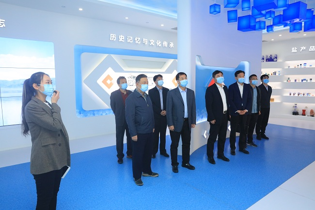 趙曉晨一行參觀了中鹽集團展廳,了解了我國鹽行業的歷史和現狀、中鹽集團的企業定位、戰略目標、業務板塊、主要產品等。