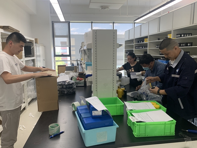 國合通測生產運營部員工正在忙碌地打包產品,確保客戶節后第一天能順利收到貨物