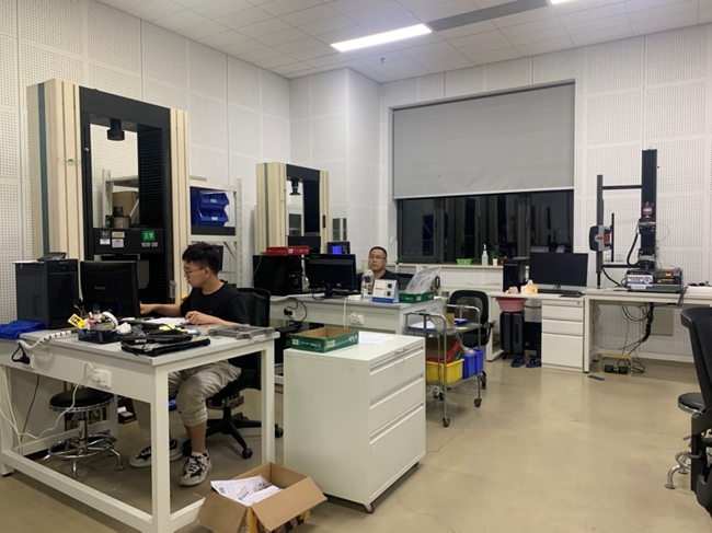 國聯研究院檢測事業部員工還在給電池安裝夾板
