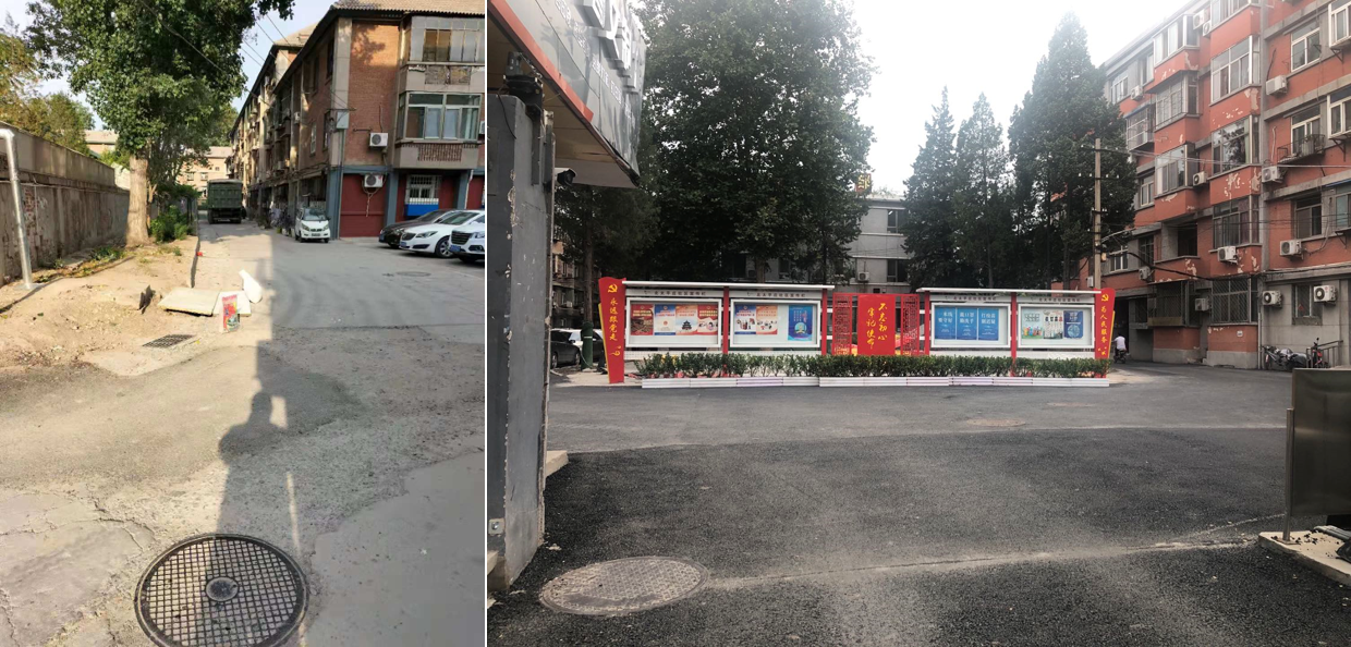 西院家屬區(qū)道路改造前后