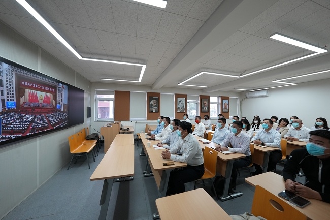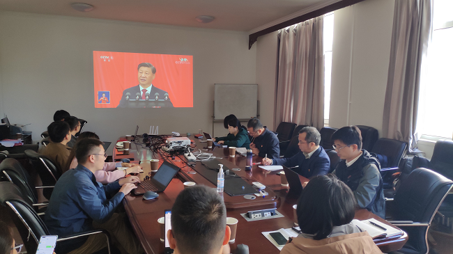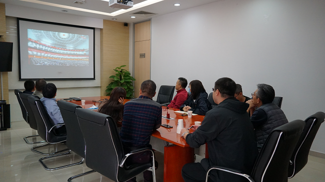 隨著大會開幕,收看直播的同志們全體起立,高唱國歌。習近平總書記的報告慷慨激昂,廣大干部職工認真聆聽,當習近平總書記報告結束時,同志們也隨著現場代表們一起長時間熱烈鼓掌。