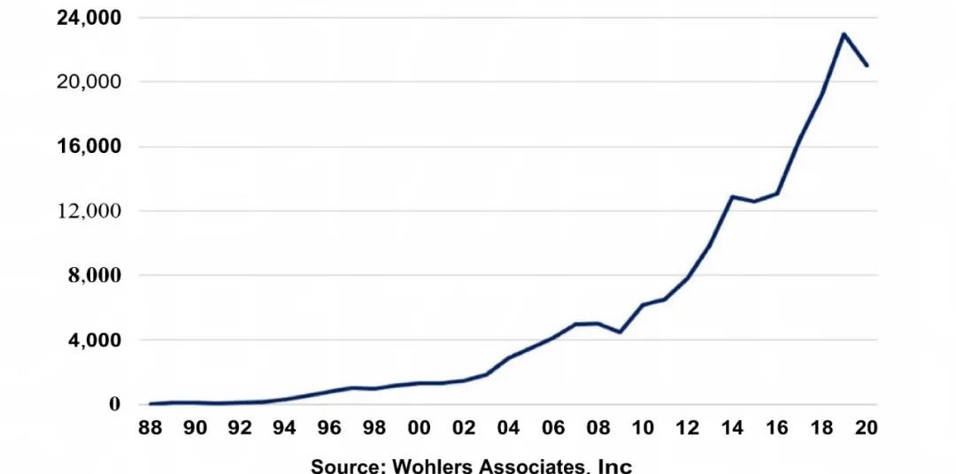 增材制造自誕生30多年以來,該領域包括設備、材料和服務在內的全球收入平均年增長率為26.1%,過去四年的平均增長率為20.8%,并有23年以兩位數的速度增長。這個行業具有巨大的未開發潛力,因受疫情影響,2020年增材制造市場發展雖然放緩,但仍然保持了正向增長。本期,3D打印技術參考介紹該市場2020年的發展情況,涵蓋設備、材料以及應用服務,觀點、數據及圖表基于《Wohlers Report 2021》制作和總結。