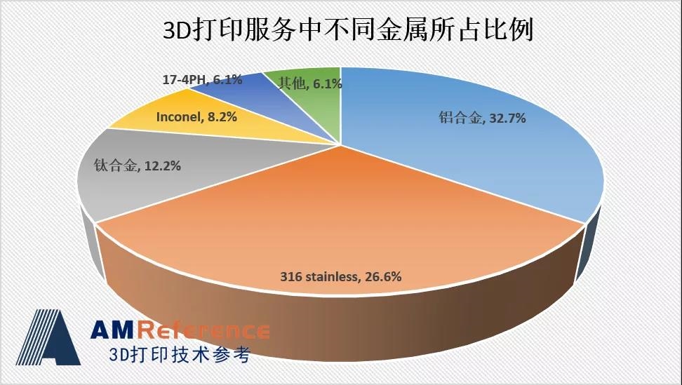 在使用的材料方面,光敏樹脂在長時間以來一直是最主要的3D打印材料,而在過去五年里,用于粉末床的聚合物粉末已經趕上光敏樹脂,并預計在未來幾年內取代其成為主要材料。根據調查,聚合物中的聚酰胺以及金屬中的鋁合金是用于服務最賺錢的3D打印材料。